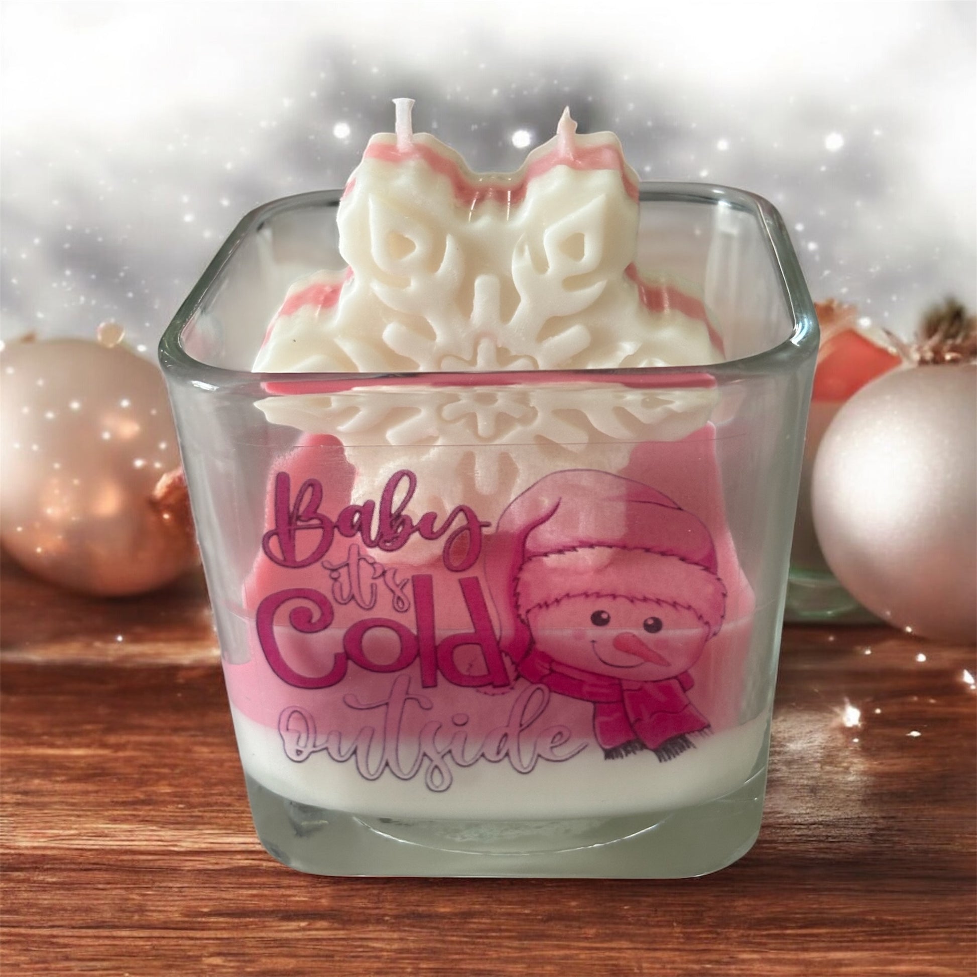 Cozy up this winter with our Baby It’s Cold Outside candle — part of our elegant Pink Collection. This 16oz soy wax candle features beautifully layered pink and white wax, topped with a large snowflake candle and a touch of shimmering sparkle for a magical winter glow.