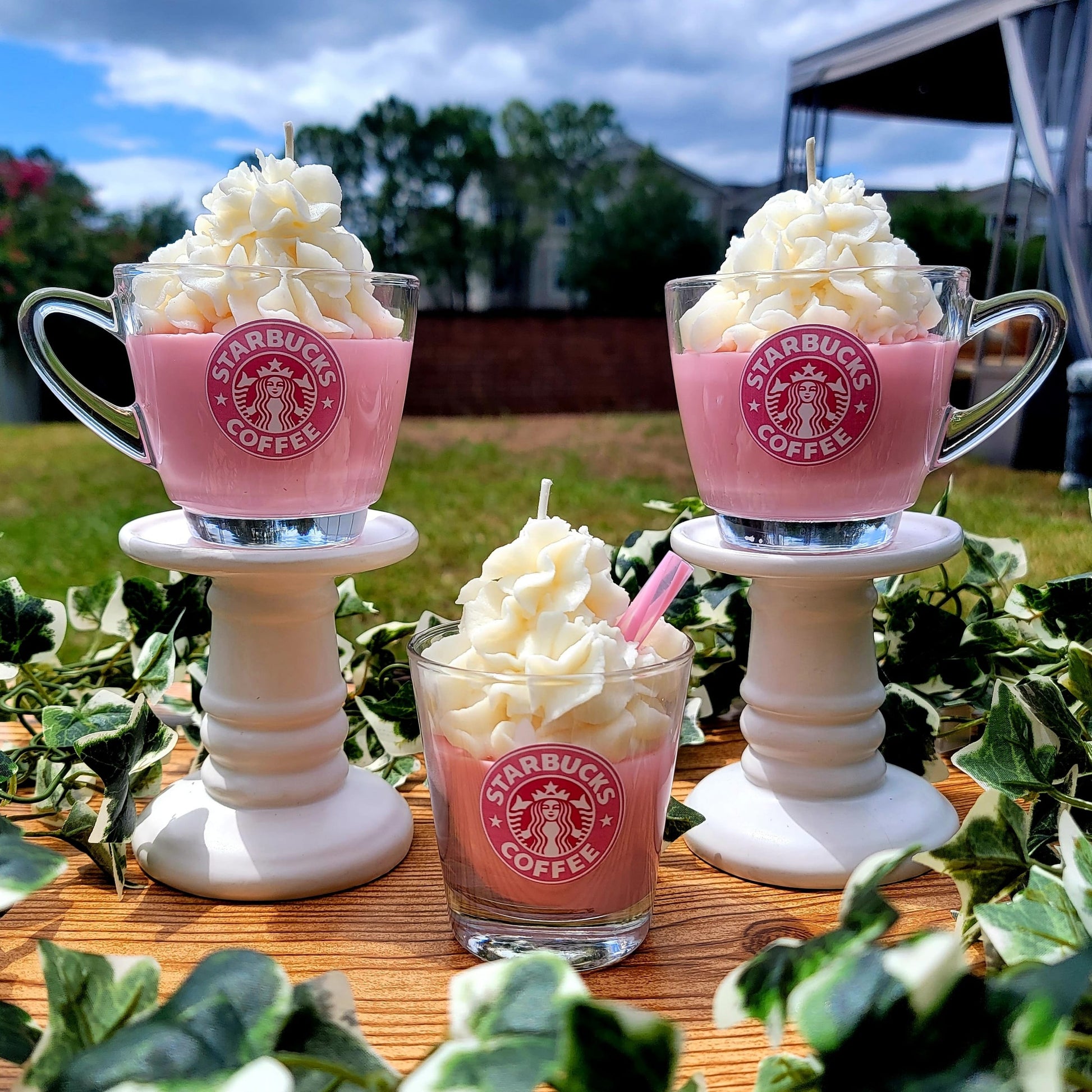 Cafe pink drink mug theme soy candle
