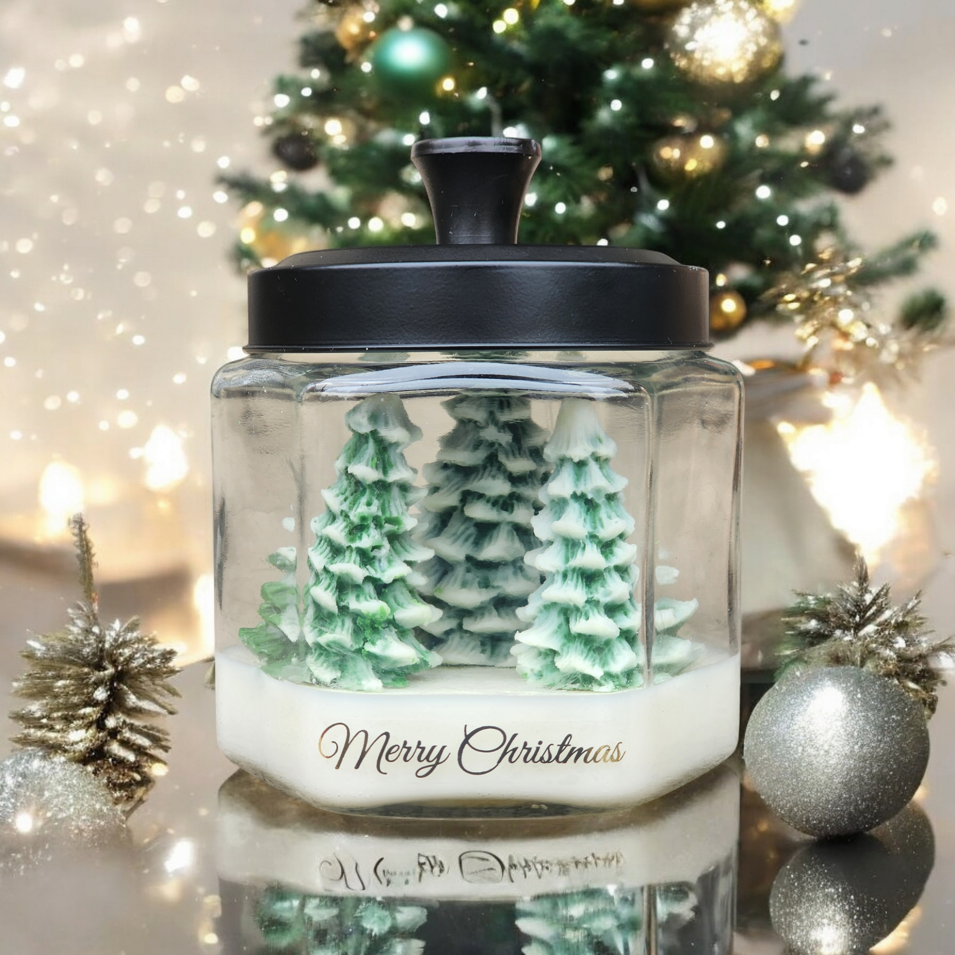 Made with all-natural soy wax, it burns cleanly while filling your space with your choice of festive fragrances — from crisp pine and fir to sweet holiday treats. Perfect as a centerpiece, gift, or seasonal décor, this candle captures the cozy charm and elegance of the holiday season.