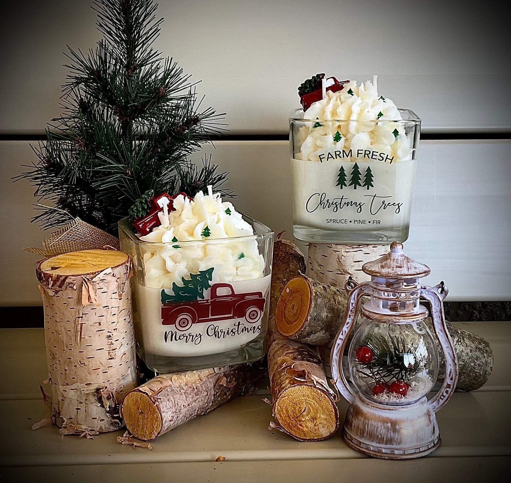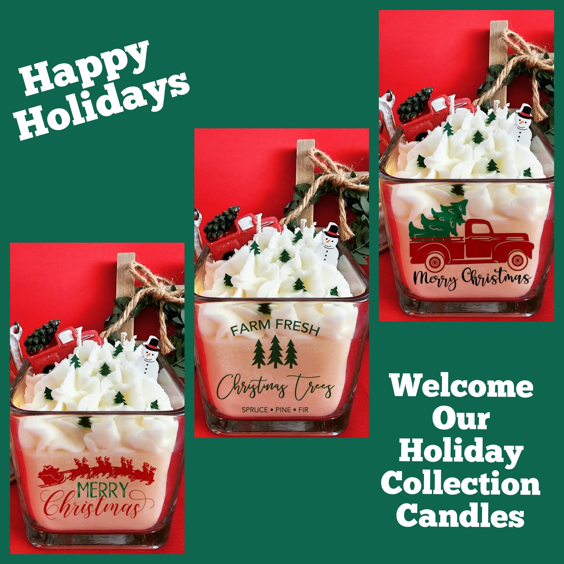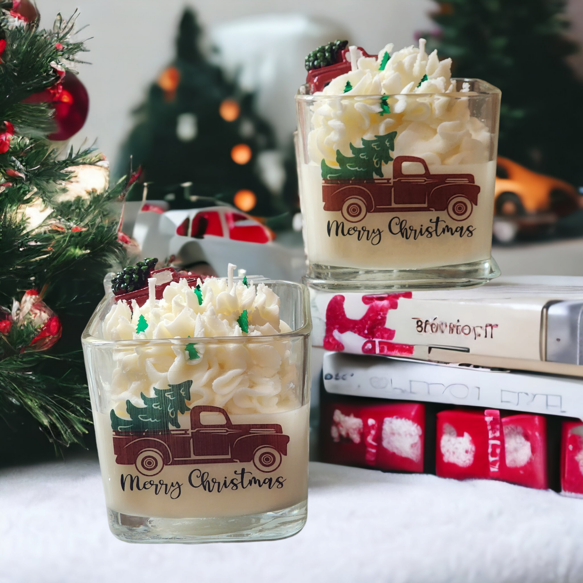 This themed Holiday Truck Candle is one of our newest best sellers! Hand-poured with 16oz of all-natural soy wax, it’s topped with a detailed holiday truck embed surrounded by charming Christmas tree embeds for a truly festive design.