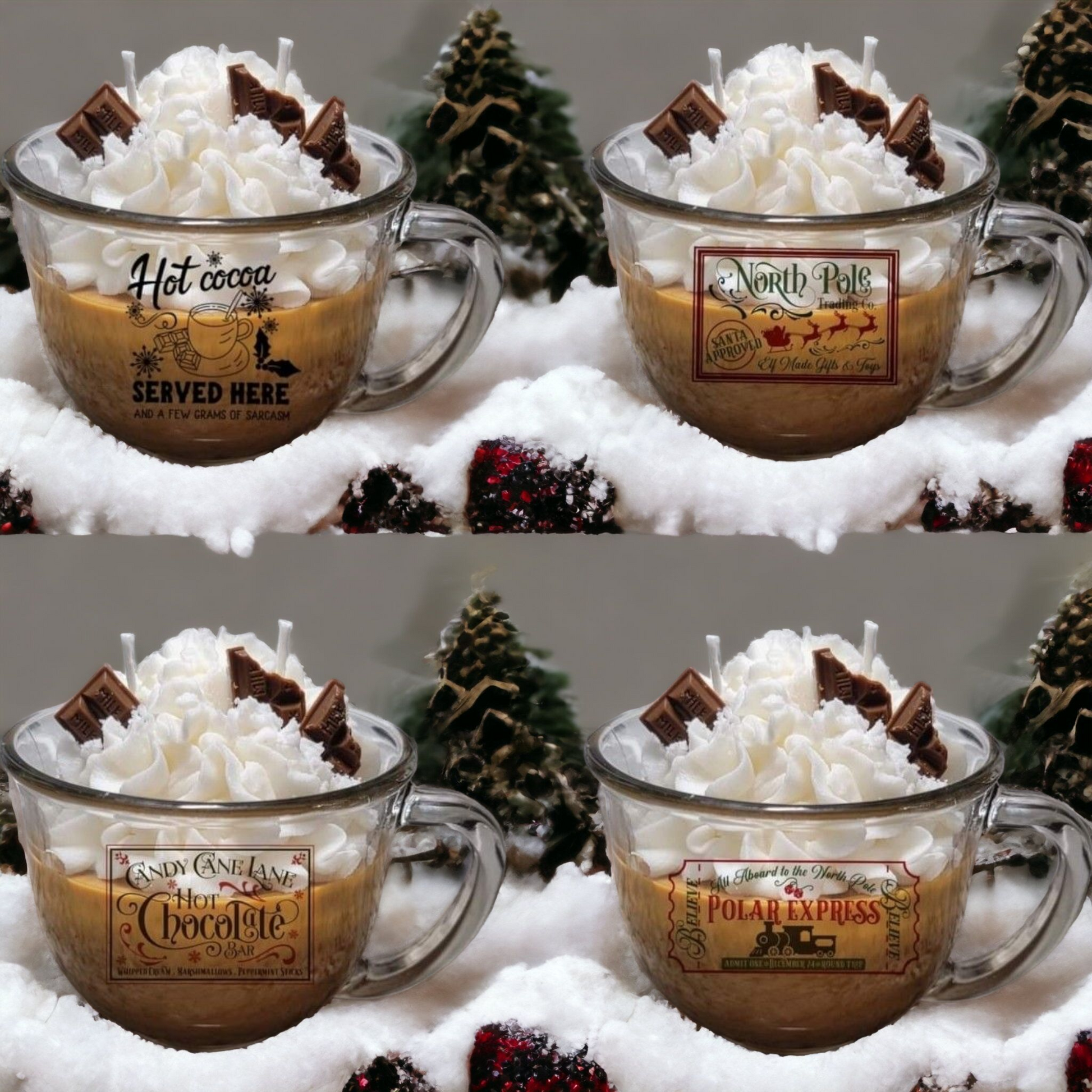 Indulge in the ultimate cozy treat with our Hot Cocoa Soy Wax Candle. Hand-poured with 20oz of all-natural soy wax, this candle is aroma-infused to capture the rich, comforting scent of hot cocoa and is topped with three Hershey chocolate wax embeds for a realistic, playful touch.