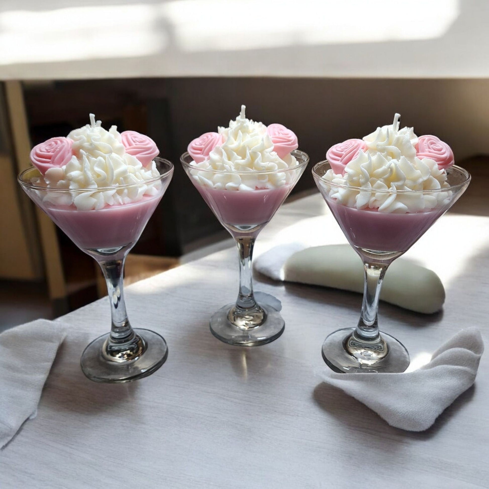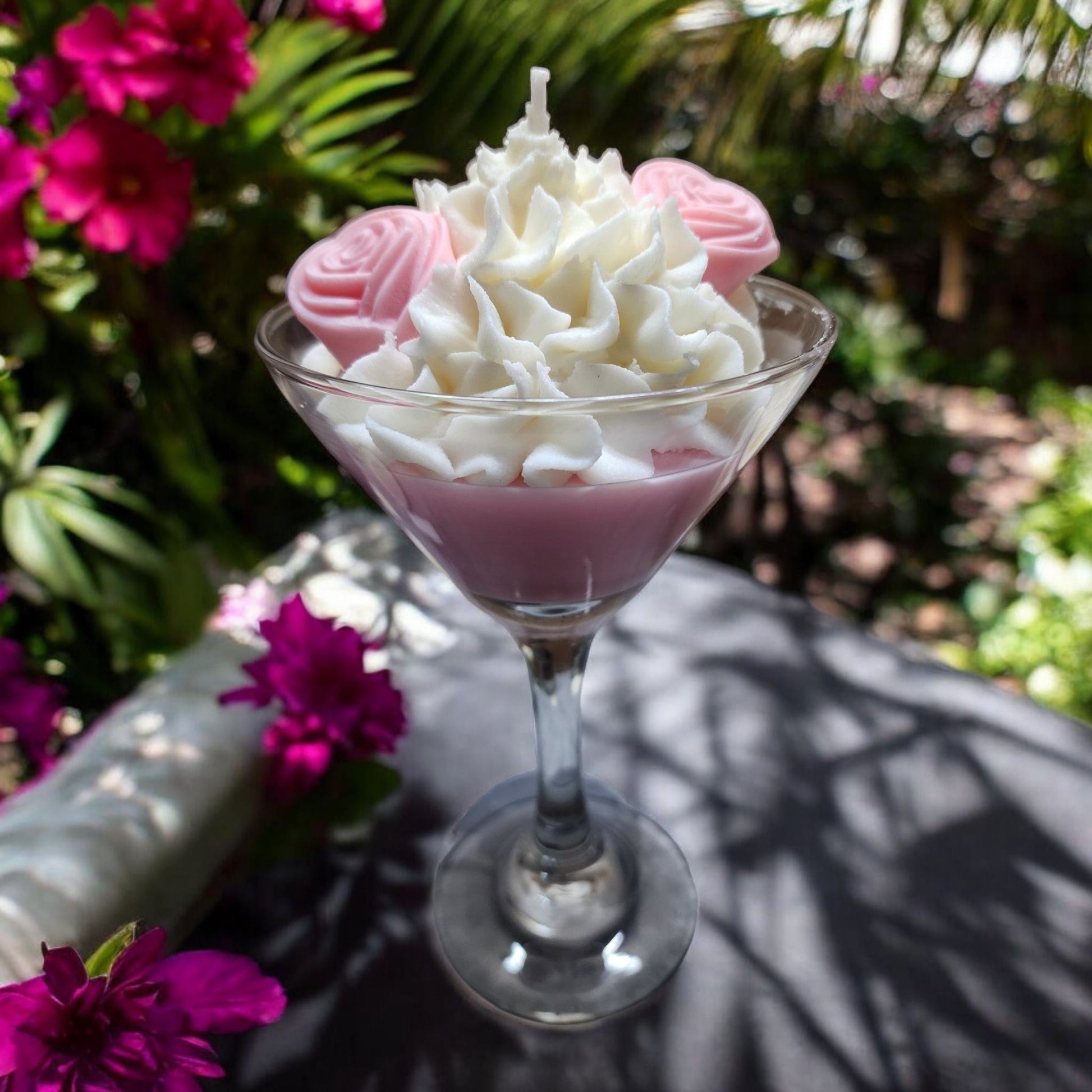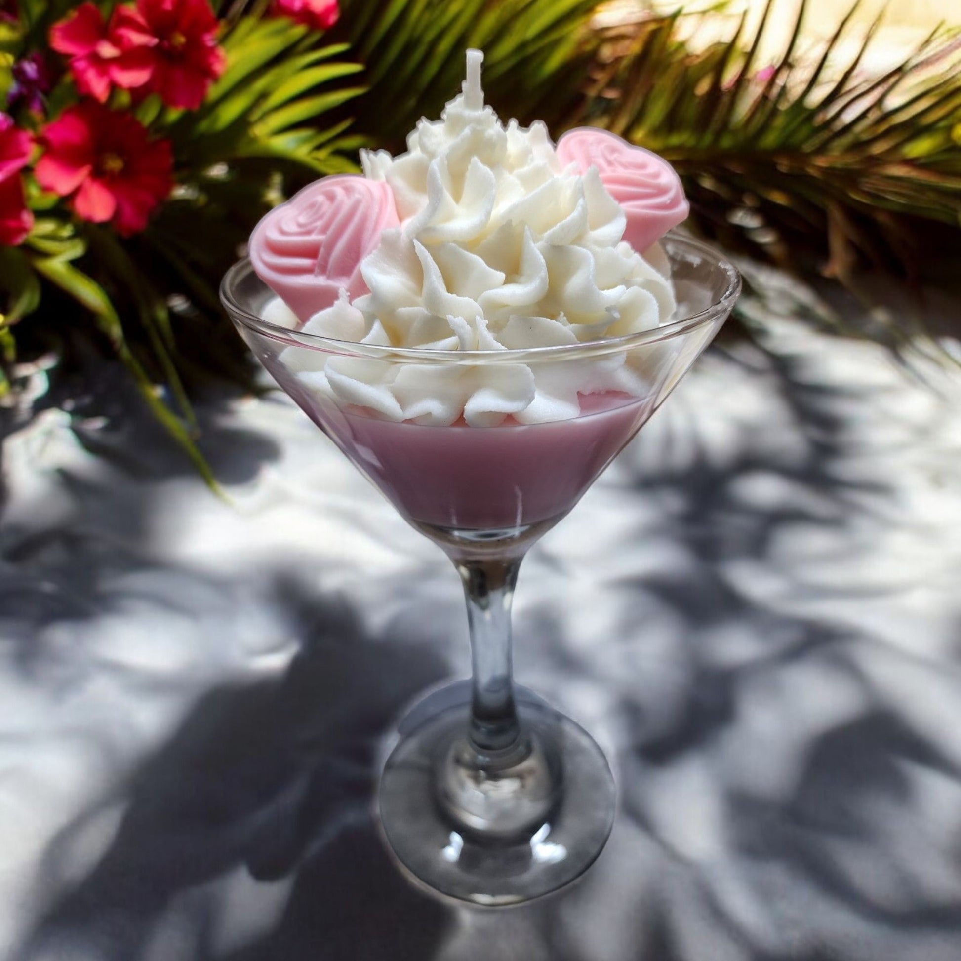 Indulge in the Martini Theme Soy Wax Candle, featuring rose wax embeds and a 12oz size. Made from soy wax, this candle provides a cleaner and longer burn time compared to traditional candles. Bring a touch of elegance and sophistication to your home with this luxurious candle.