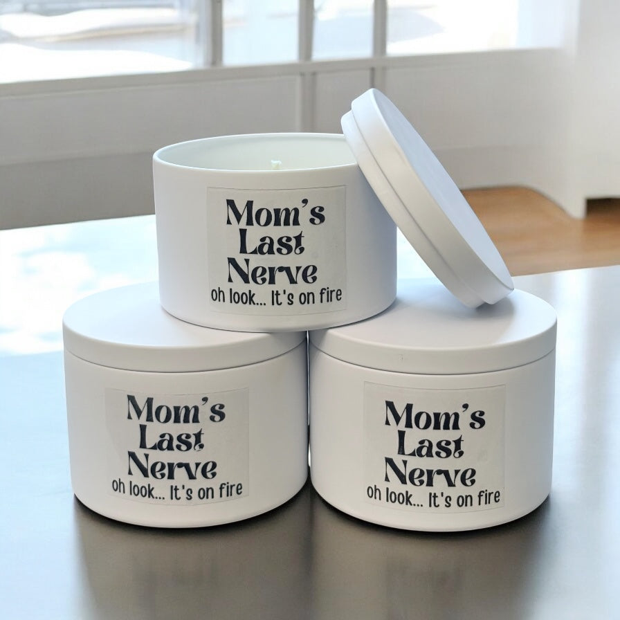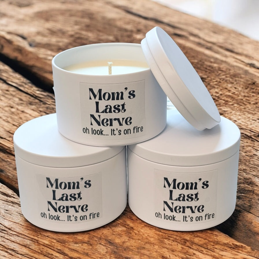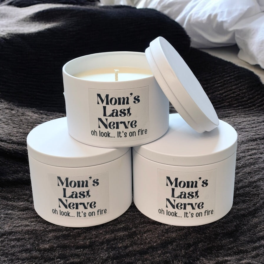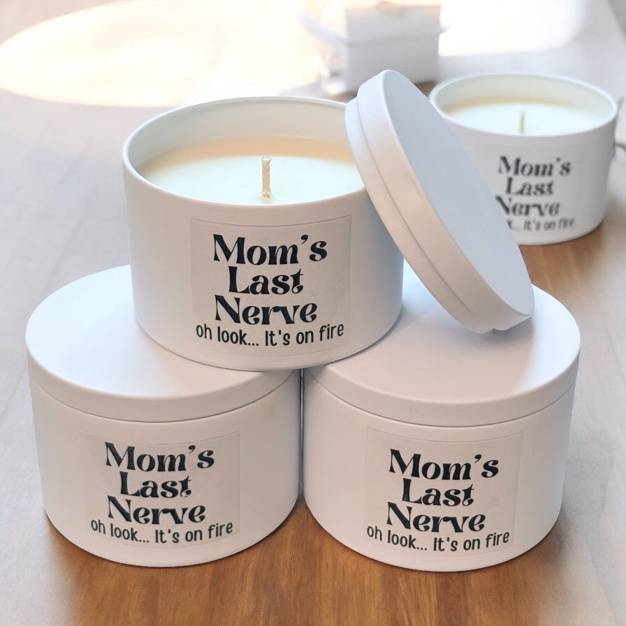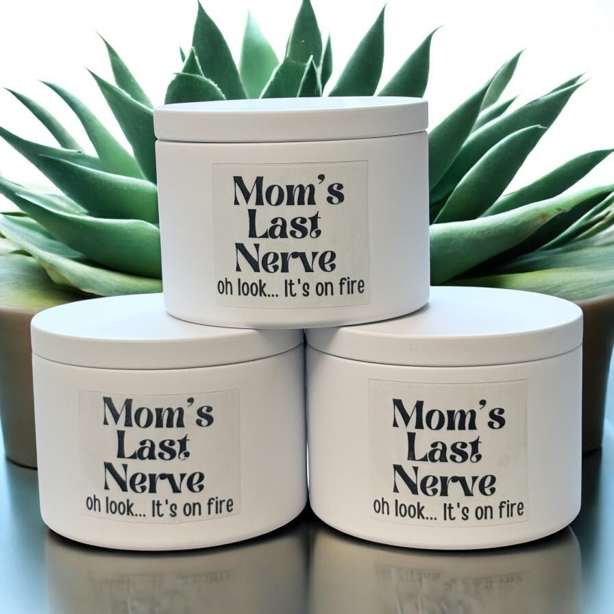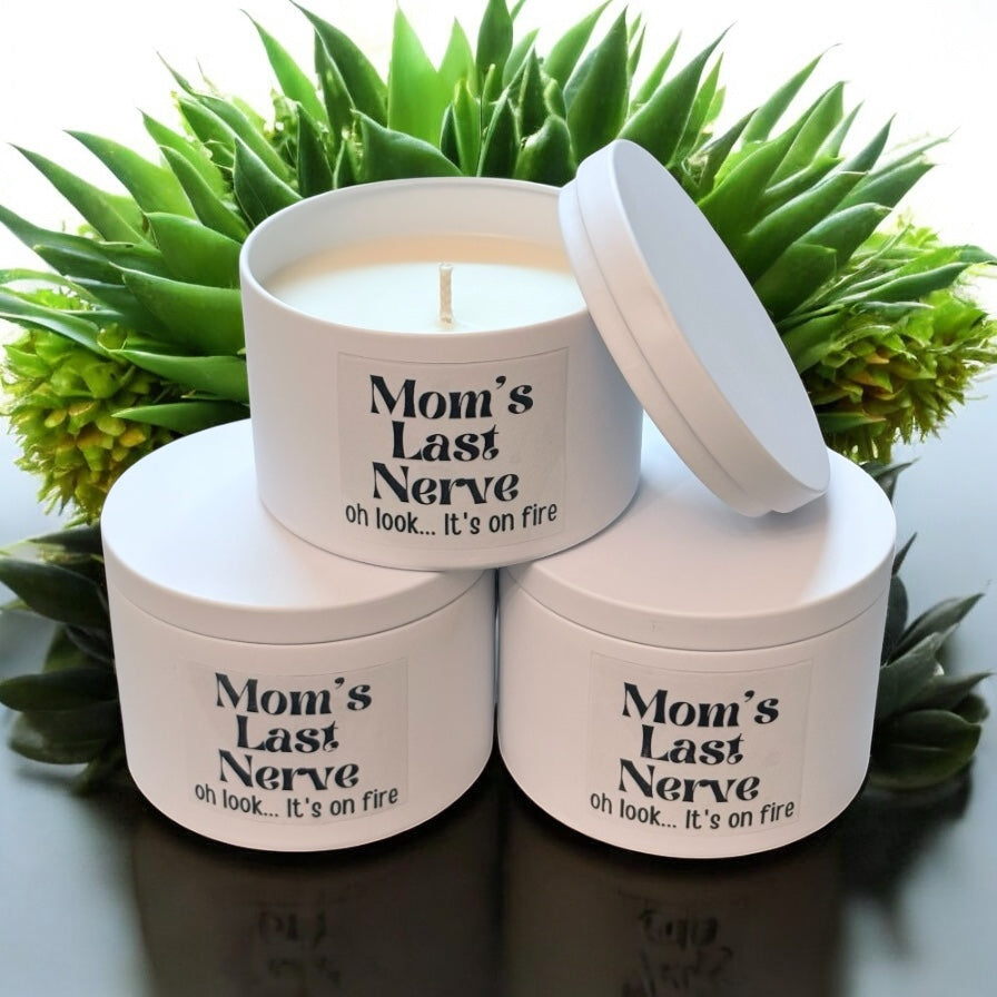 Light up your mom's life and give her a good laugh with the Moms Last Nerve Soy Wax Candle! Made with all-natural soy wax and a sense of humor, this 8oz candle will bring a smile to her face and add a touch of relaxation to her day. Show your appreciation with this perfect gift for Mother's Day or any day, just because!